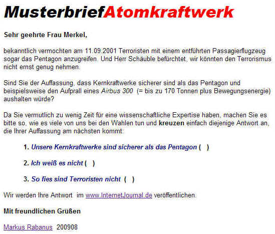>> Musterbrief Atomkraftwerk