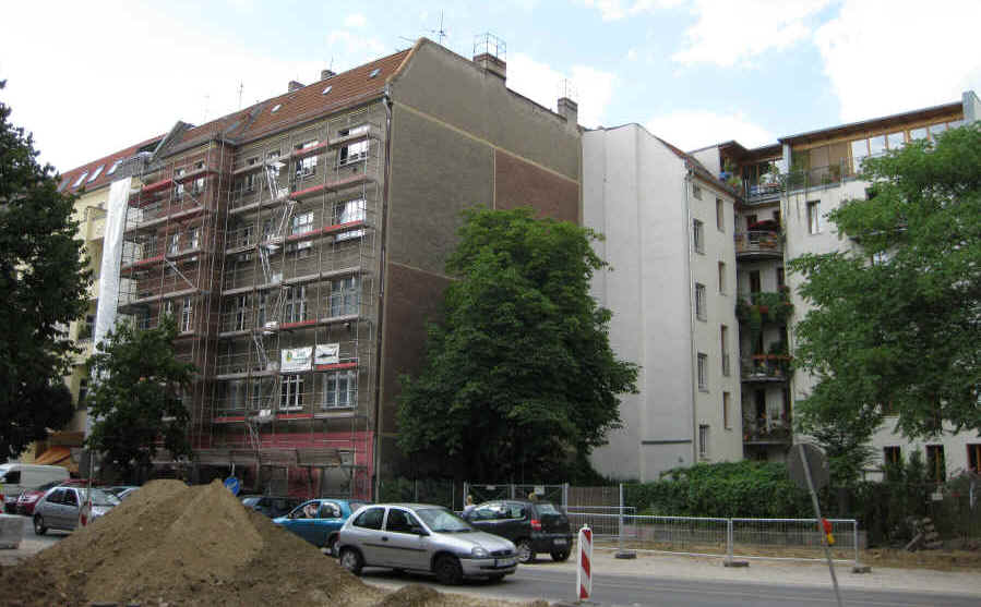 Ecke Dunckerstraße gegangen. In der Bildmitte wiederum die eingerüstete St53.